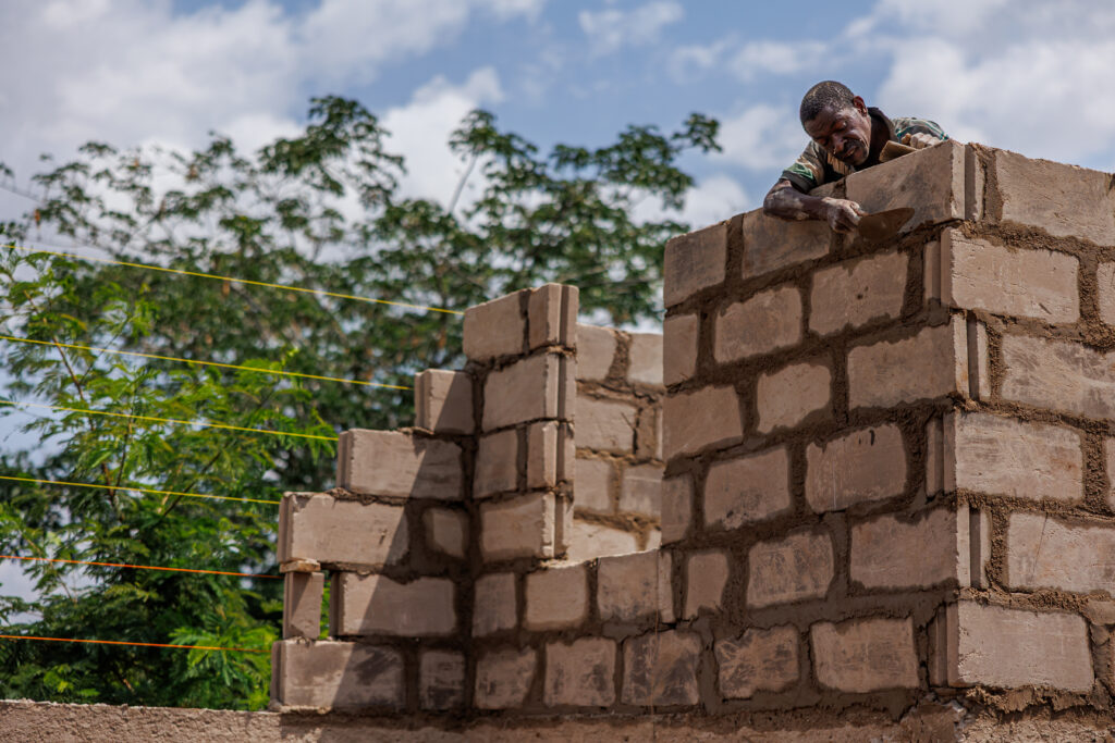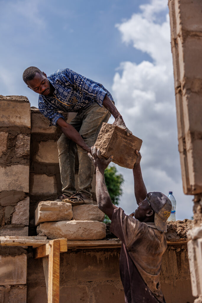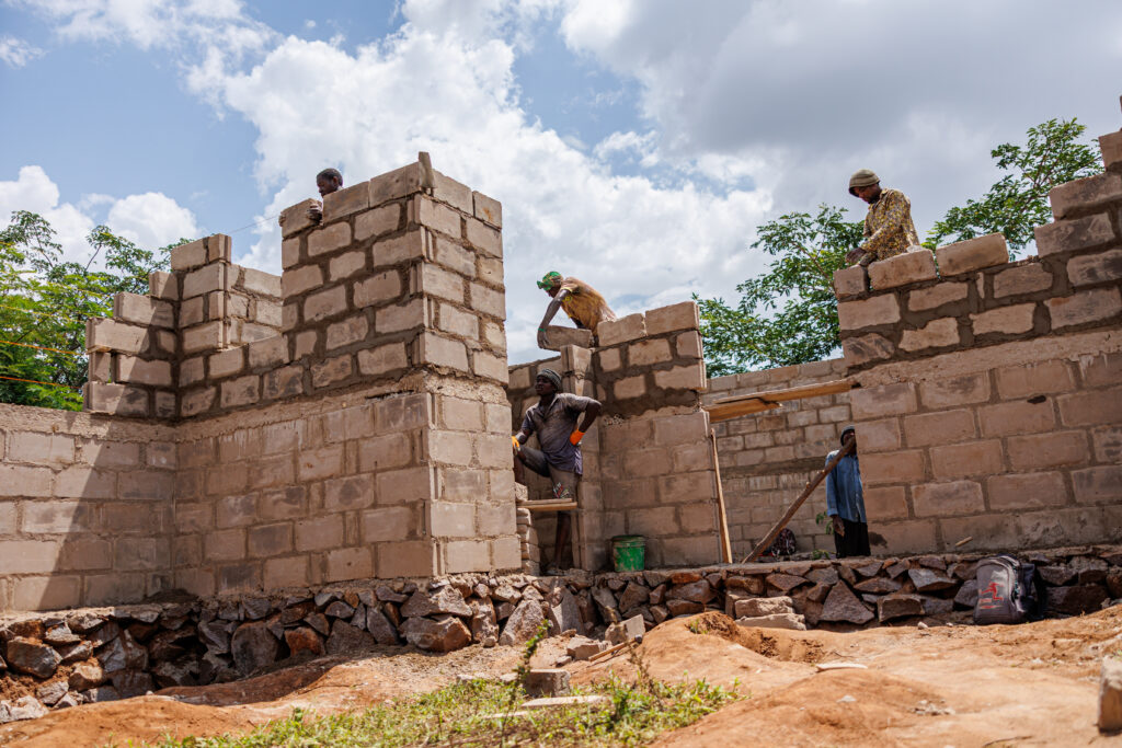 Dormitory walls are going up piece by piece, without modern construction equipment and without access to electricity. Progress depends on time, labor, and the people showing up each day to keep it moving forward.